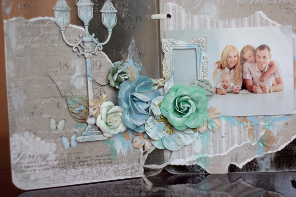 It's Elena today with a project using the Clear Scraps Scalloped Tri Fold Frame. Applied gel medium and then spritzed with Shimmerz, after that I painted the clouds with acrylic paint.