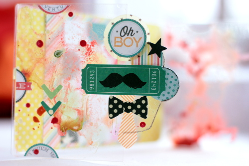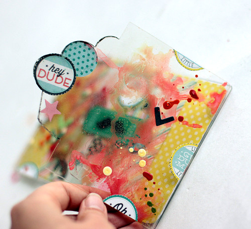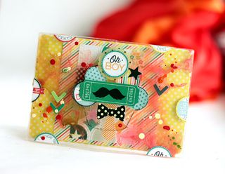 I used Cupcake Send it Clear Card and a very bright collection by Pink Paislee.