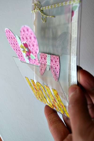 The vellum is adhered to only the top portion so that the butterfly can join together.