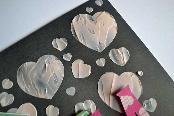 Look at the dimension of the hearts. The modeling paste along with the stencil has helped to create this effect.