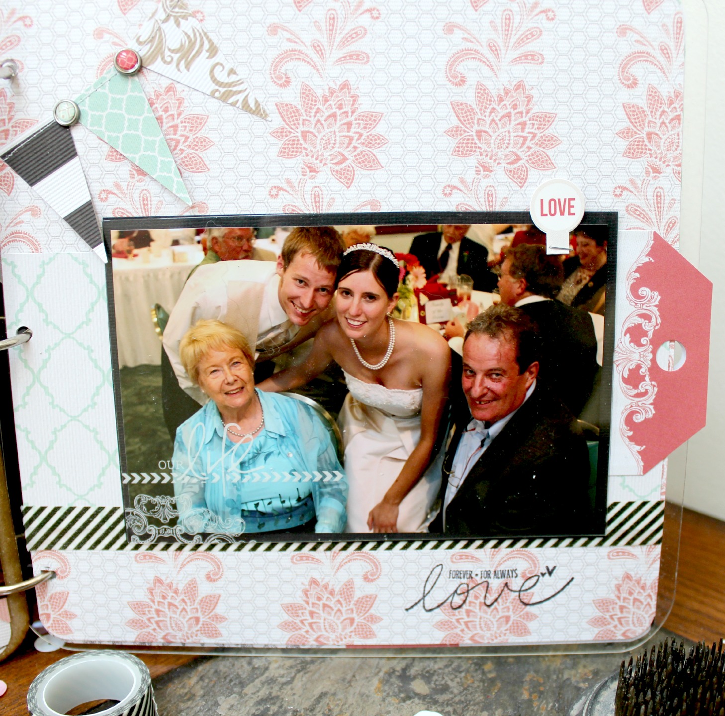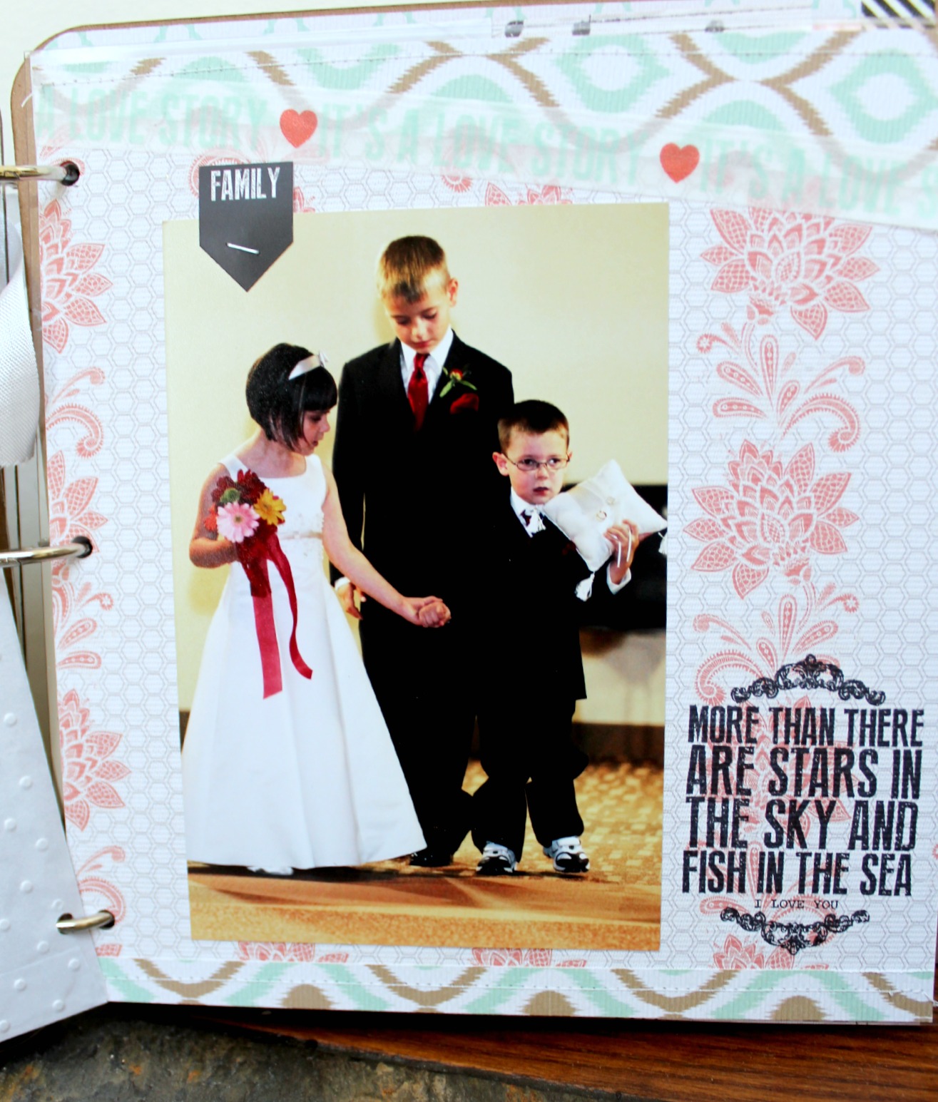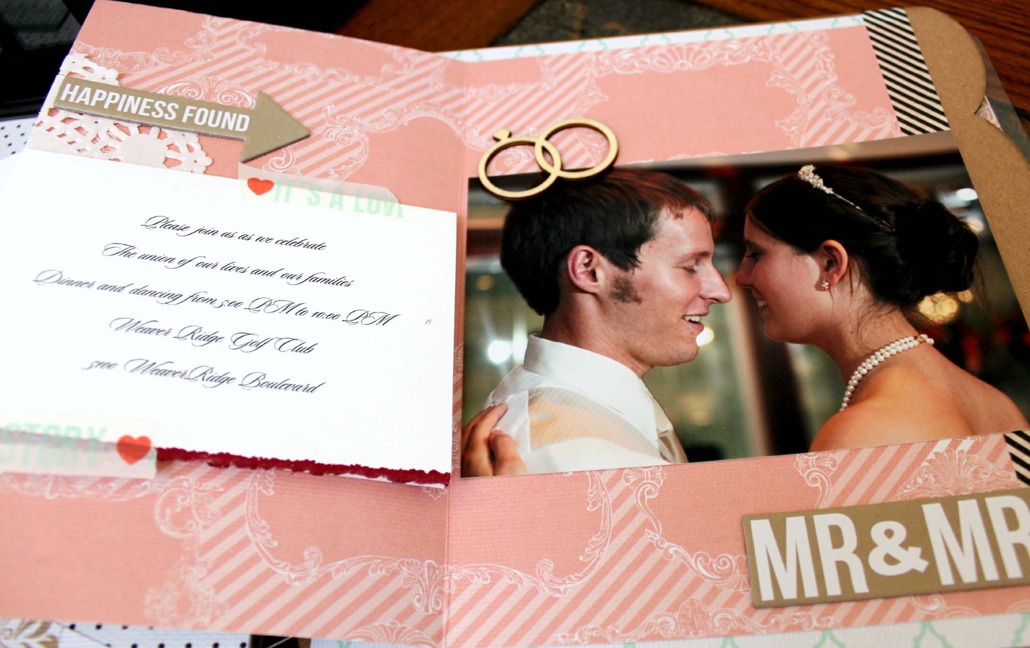 I created a pocket on this page to hold the invitation. It slides out easily for viewing.