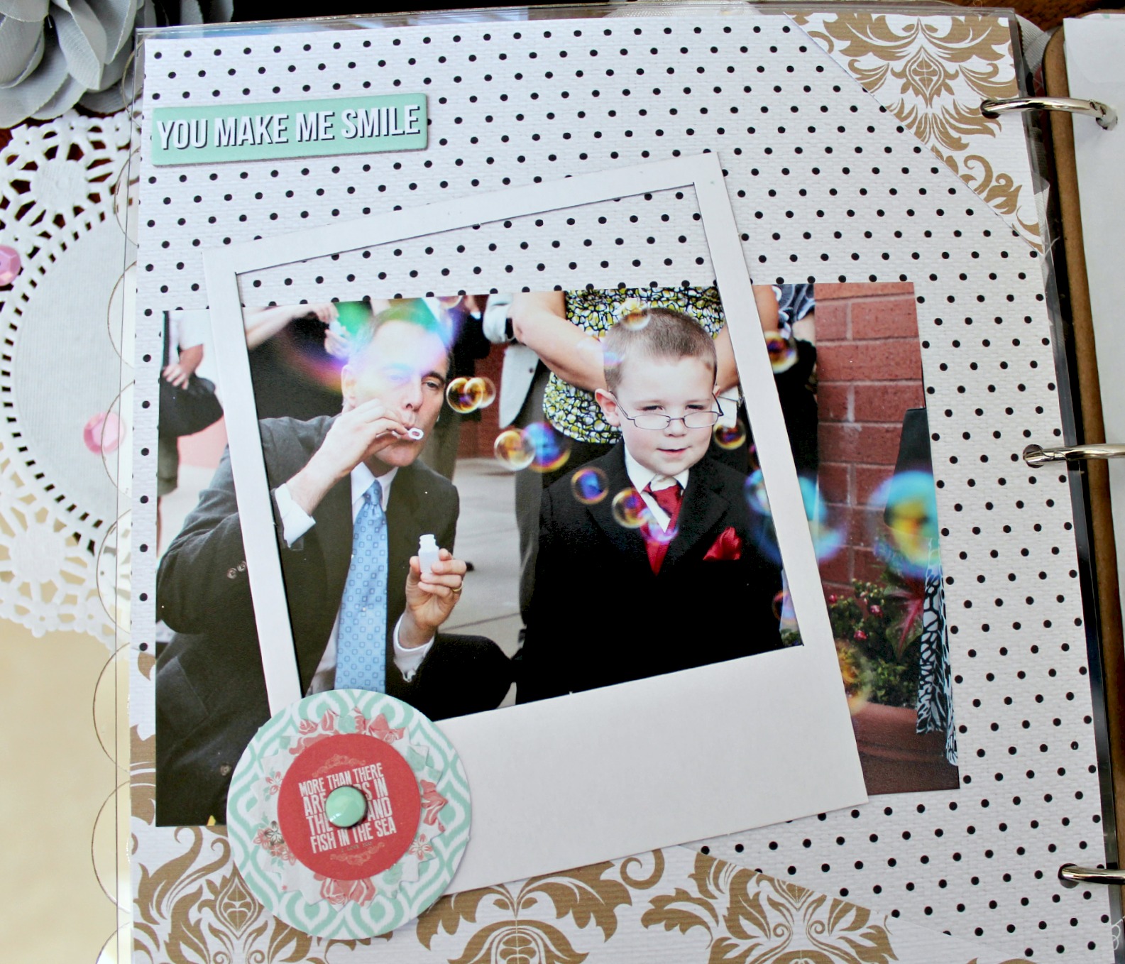 For this page, I used one of the file folders that come with the paper collection to add more photos to my book.