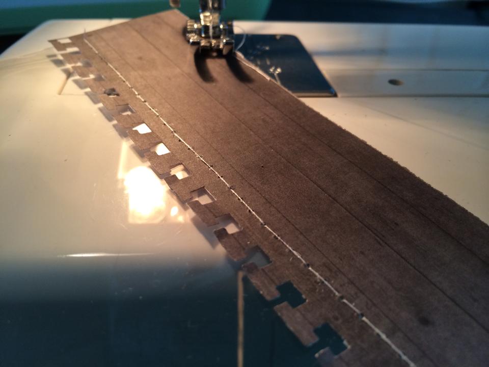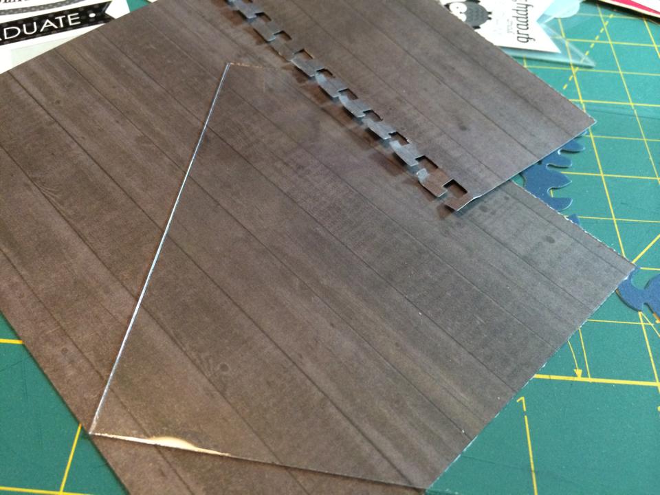 I then adhered the clear front to the rest of that card by sewing it onto the back of the card. Which is alot easier than you would think. Before I did this though I edged the paper with the notebook paper punch from EK Success. This is literally one of my favorite punches. I find it has a HUGE amount of possibilities.