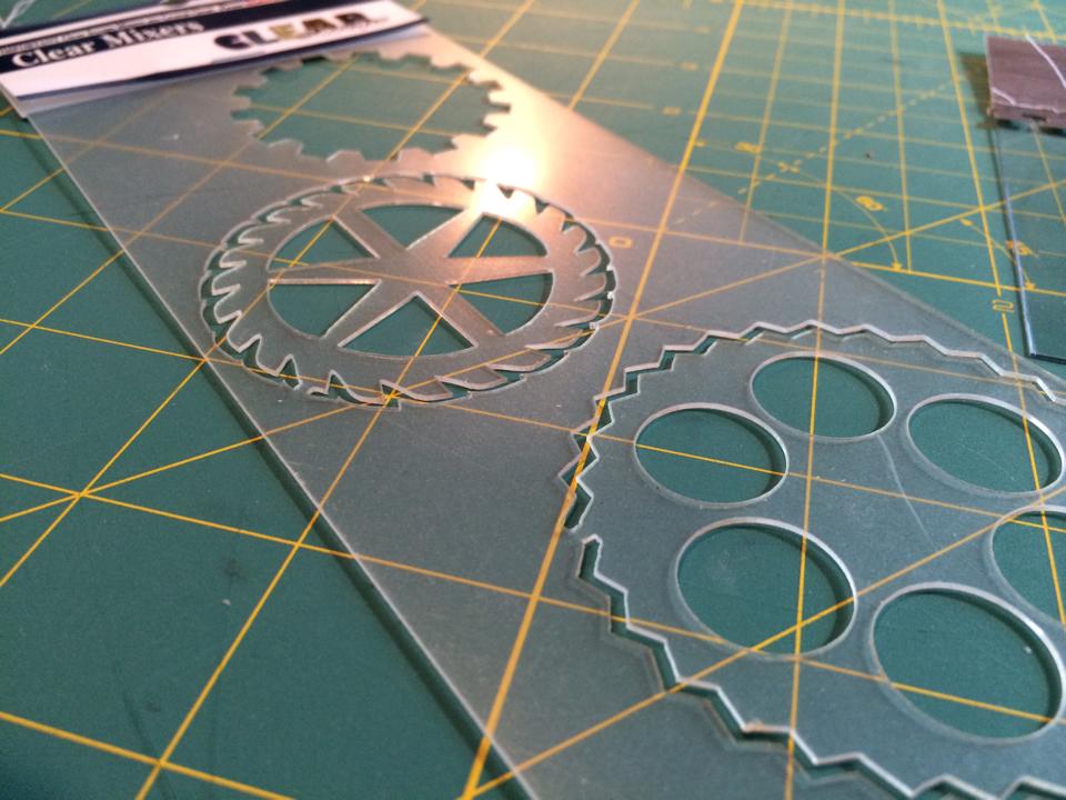 While I was waiting for his feathers to dry (haha) I started making some embellishments for the front of the card. I colored one of the gears from the Gear Clear Mixers. I colored it with IG5 and IG6 Markers. I also created a little pendant using the Clearly Accents Pennant Embelishments, I added a little sticker I had in my stash that says "who's your graddy?". Which I find hilarious for some reason.
