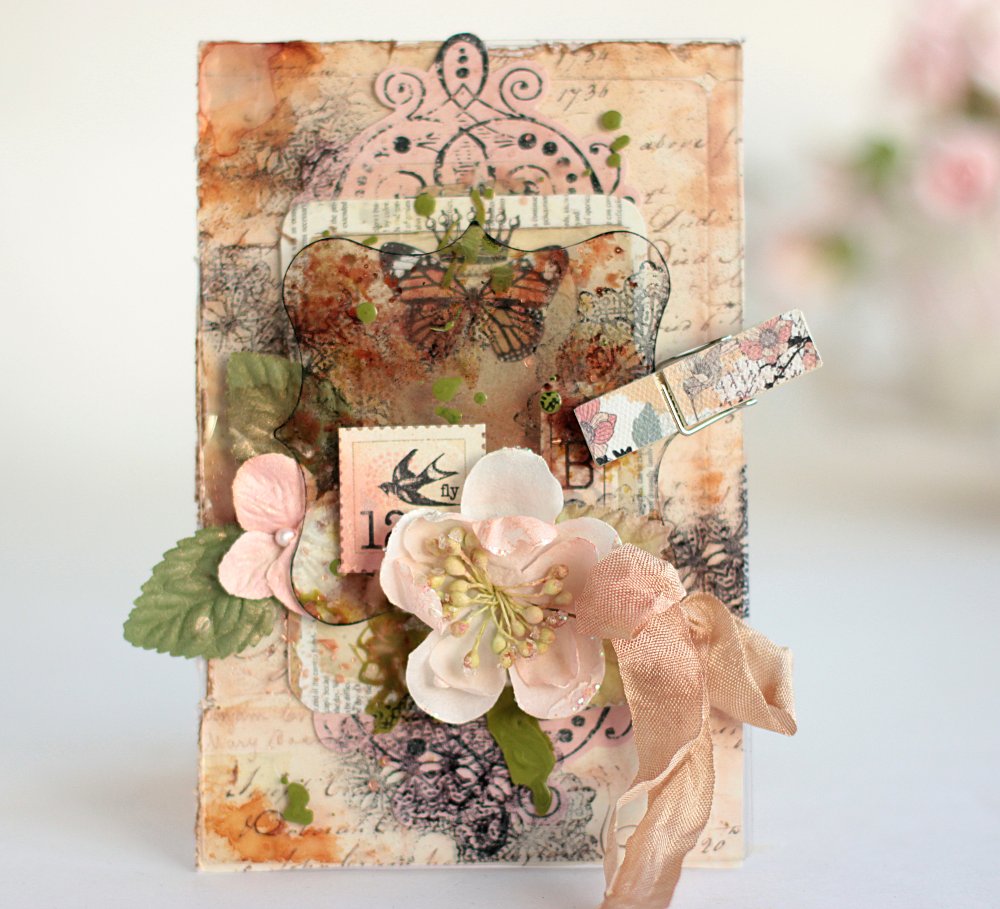 I have a Vintage Card to share with you today. I used 2 acrylic pages from   Acrylic Mini Word Album BABY ( i used the other sheets and BABY for the other project)