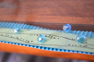 Adhere to front of acrylic card and add corrugated paper behind for more dimension.