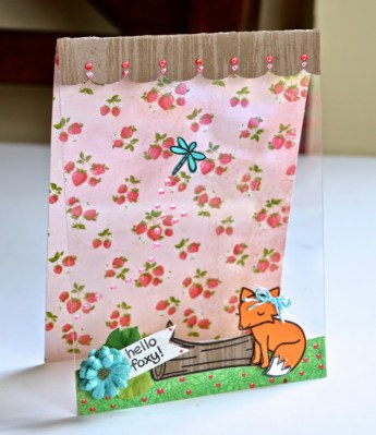 Trim out 4.5X6" Clear Scraps acrylic- then 4.5X7.5" patterned paper.