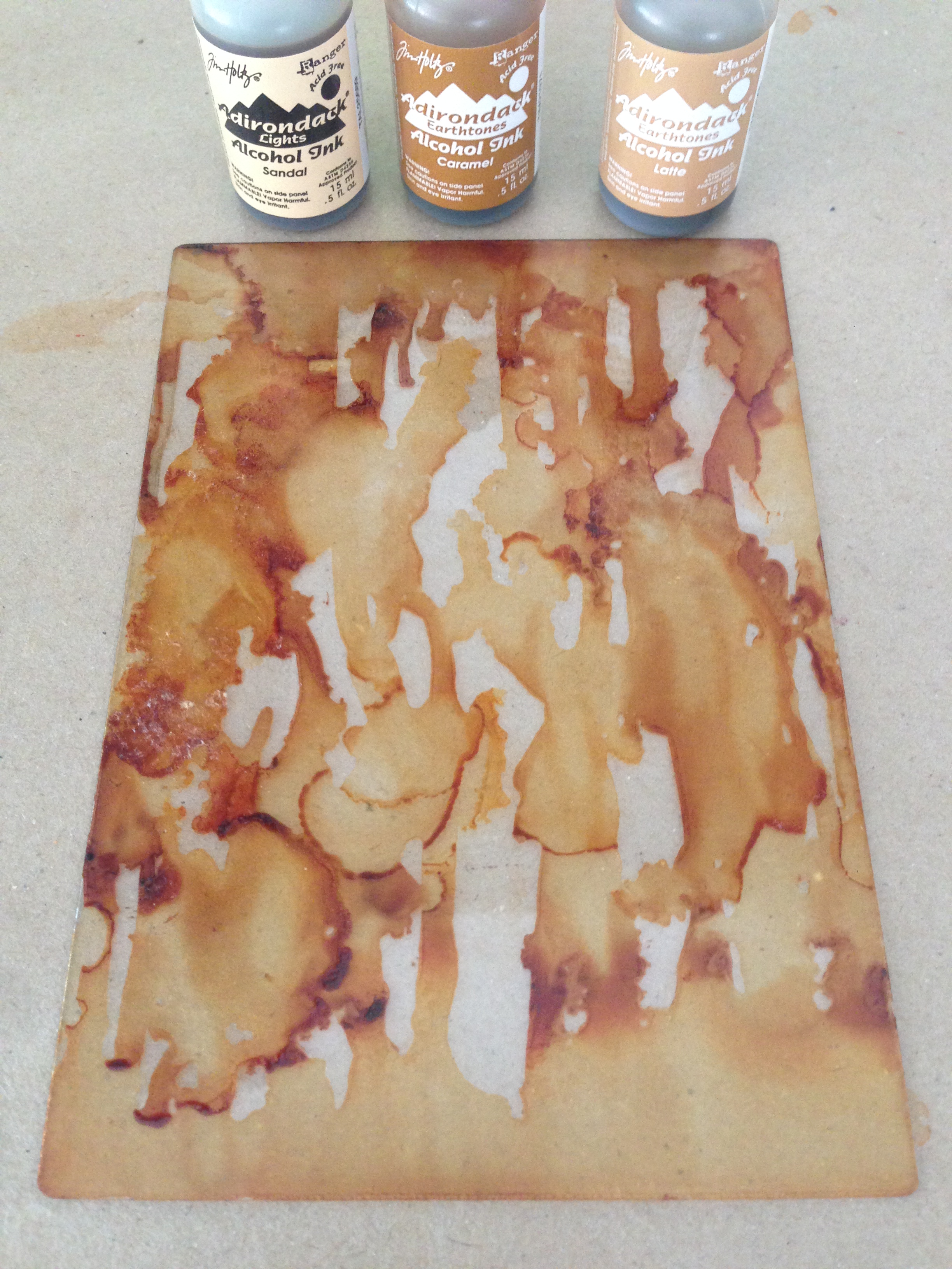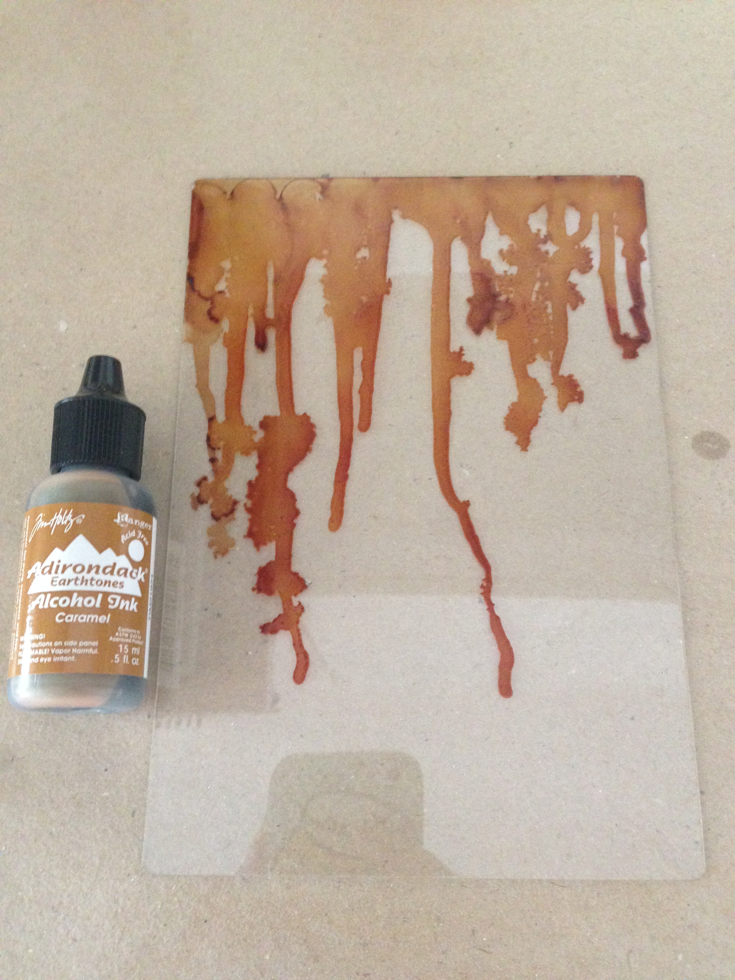Step 2: Using some alcohol inks, start to add a few drops on the top and let it drip down…