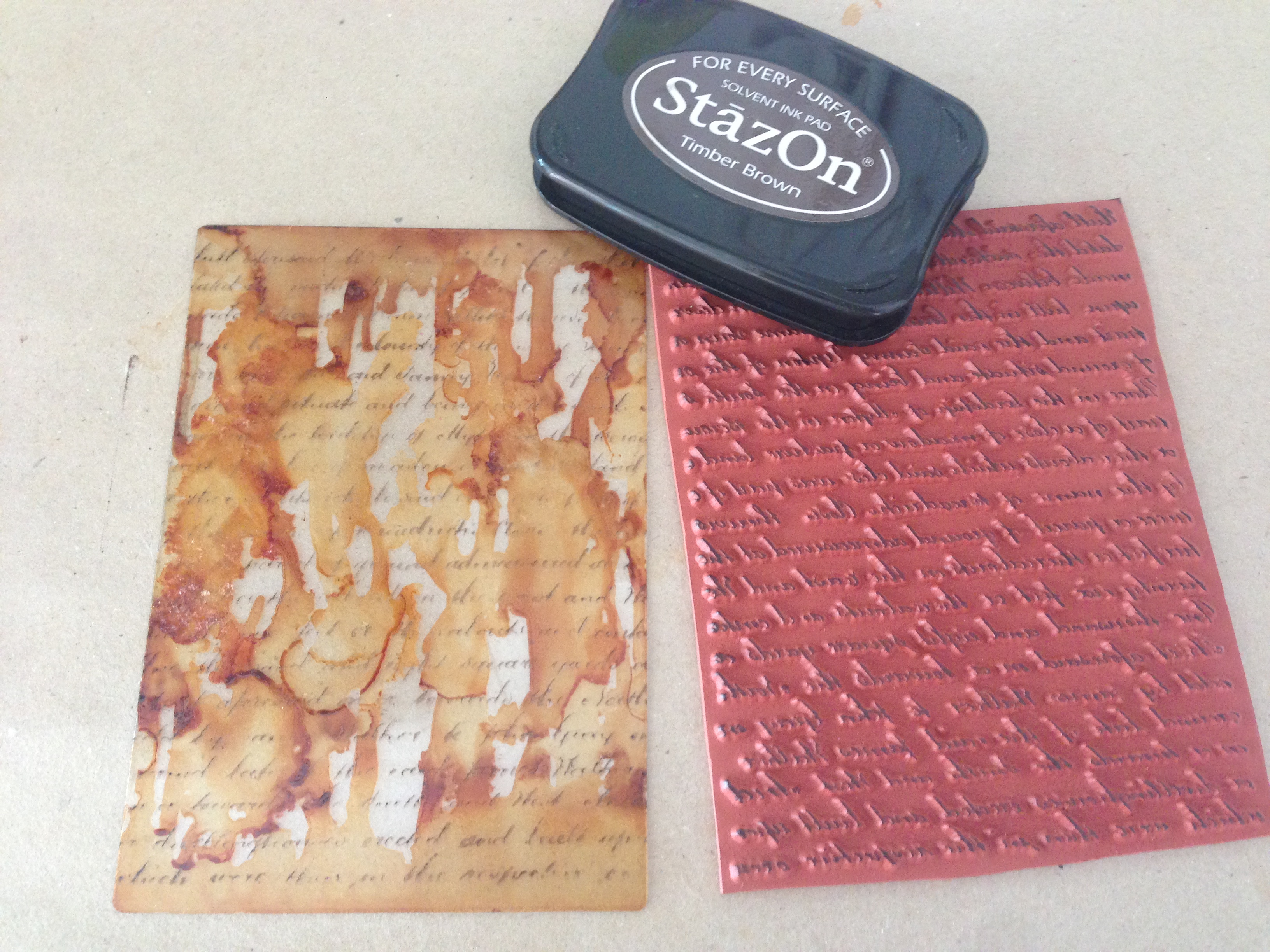 Step 6: Stamp script text over the card using StazOn…