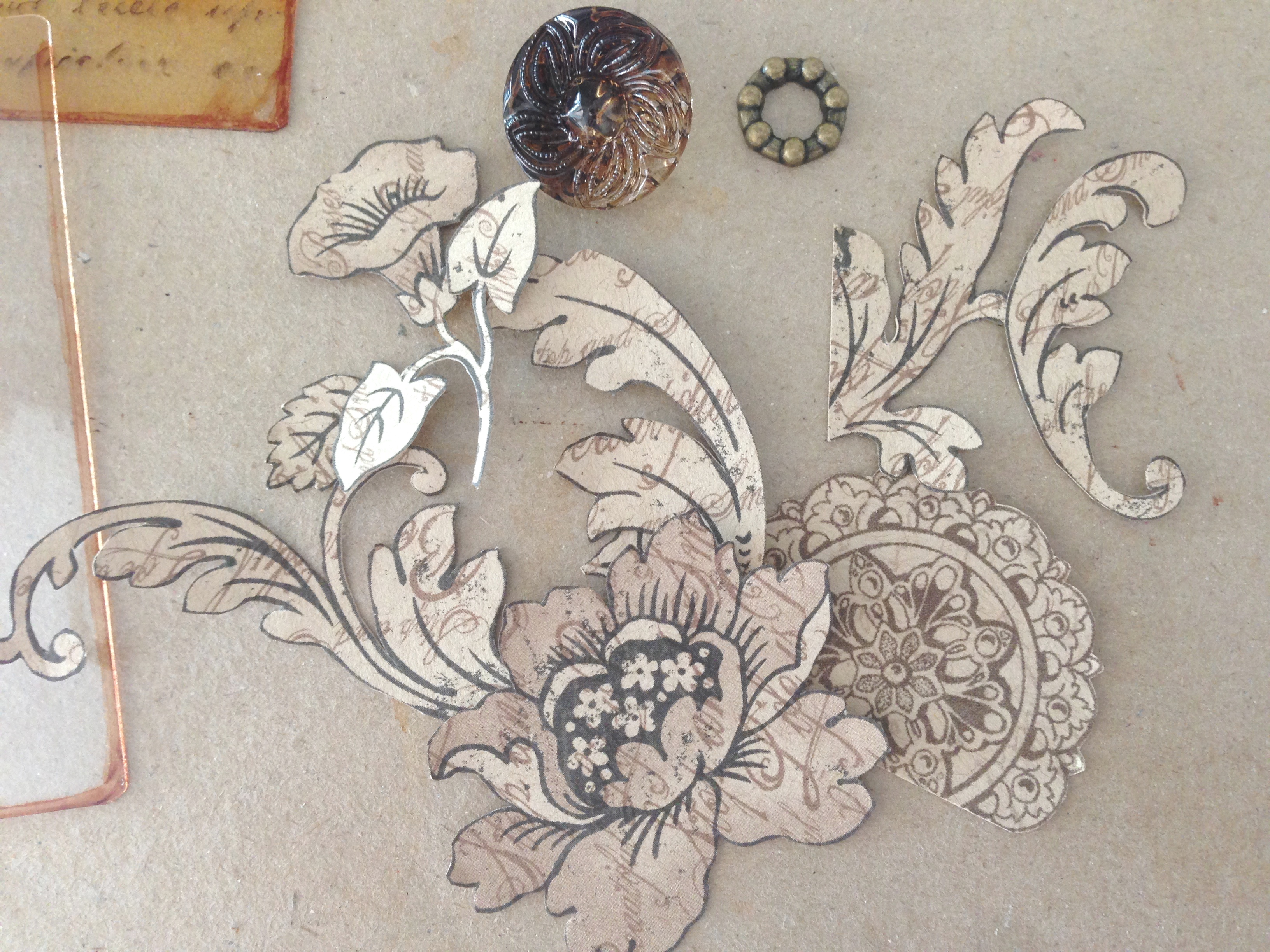 Step 8: Fussy cut some designs and gather your embellishments…