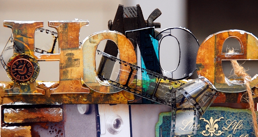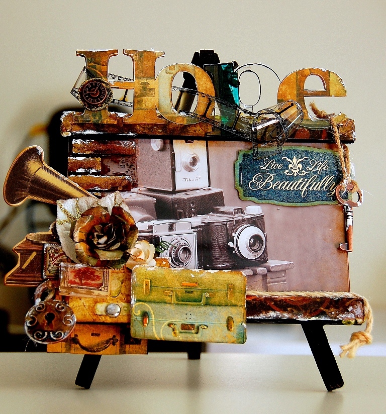 In the above altered frame, I've used an acrylic "Hope" expression by Clear Scraps