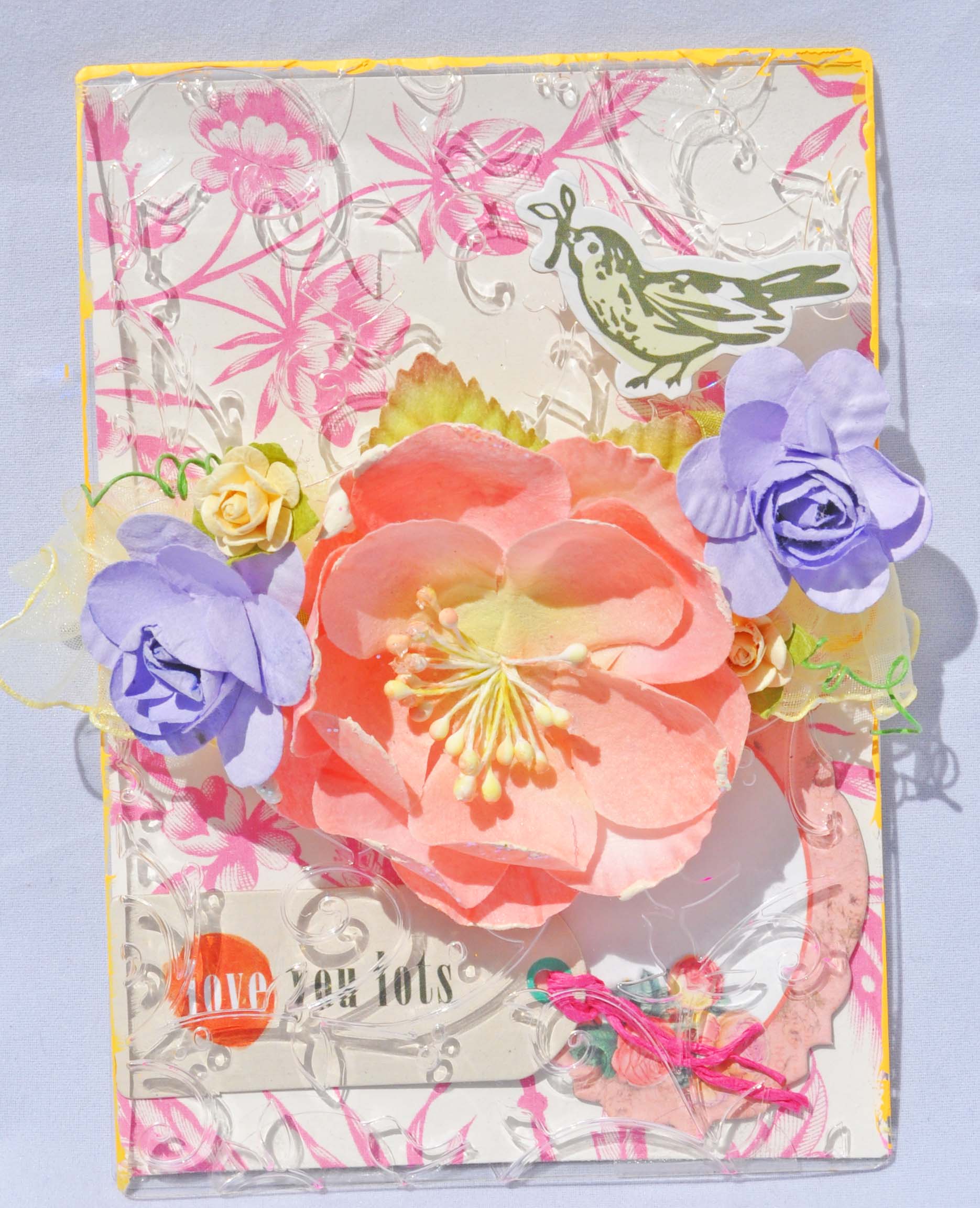 I finished the card with some older papers and bits and baubles I had lying on my desk.