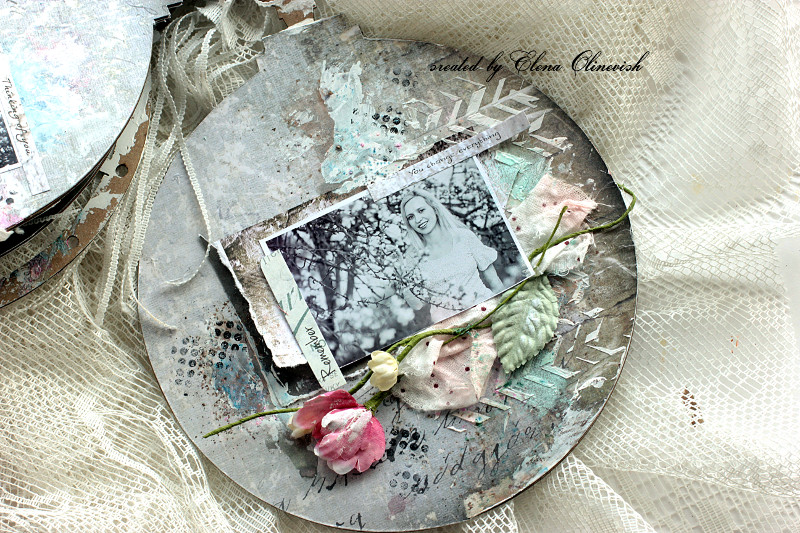 I primed the cover with Gesso and then covered it with some paper leftovers , that I have left after filling the pages in the album