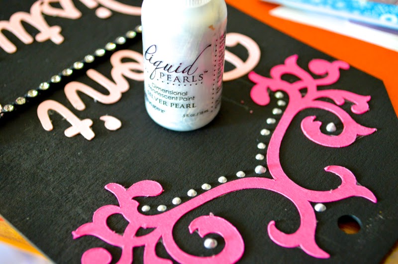 to cut out the flourishes with hot pink card stock.