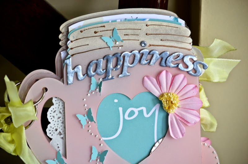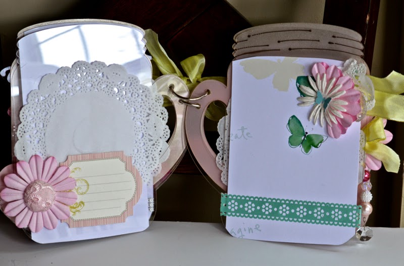 I spray painted the from and back page using a soft pink spray paint (Krylon) for the jar area and a brushed nickel for the lid area. Then I accented it using a bronze liquid pearl bottle.