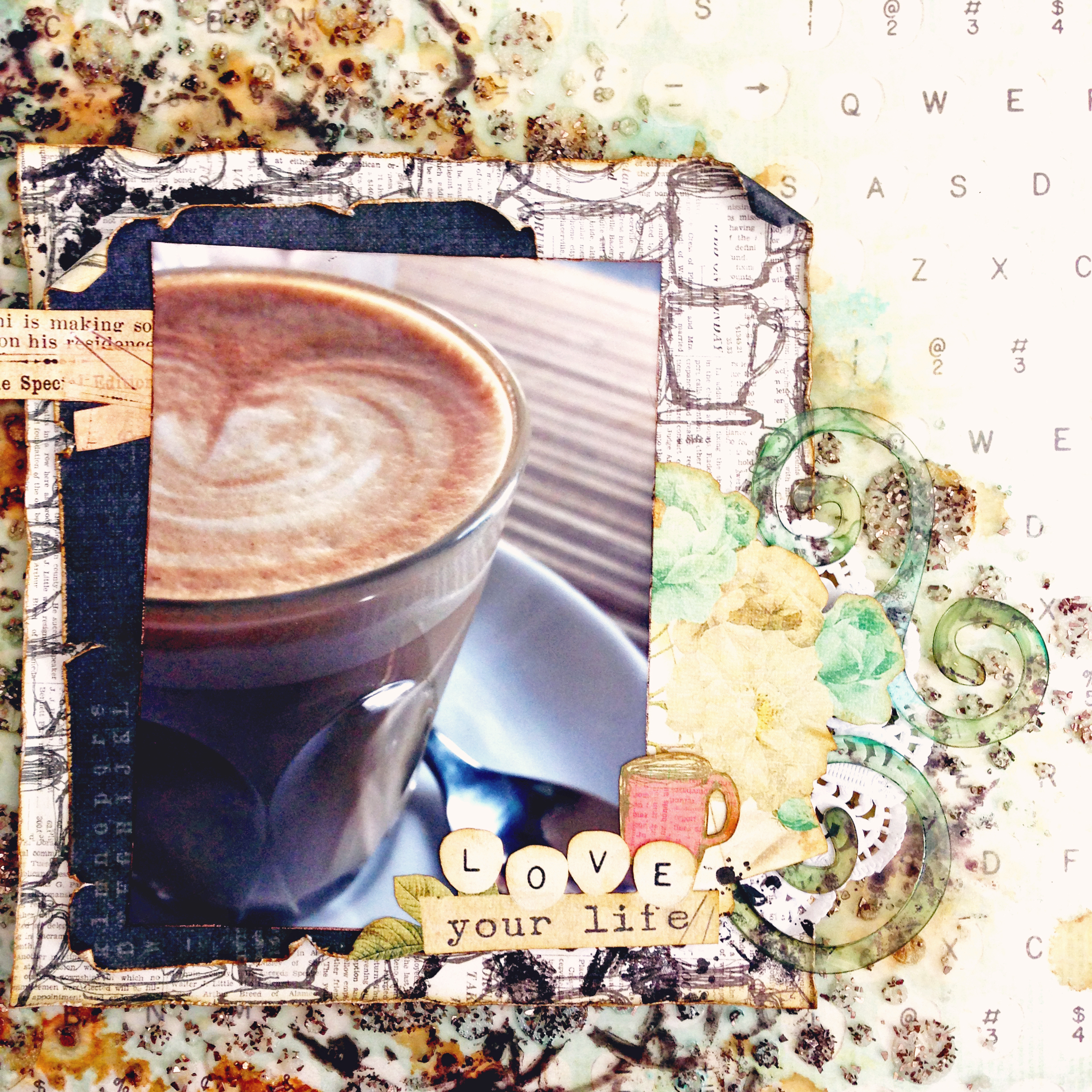 Today I'm sharing this coffee layout using this XL Deco and one of the scrolls from the Flourish Embellishments…