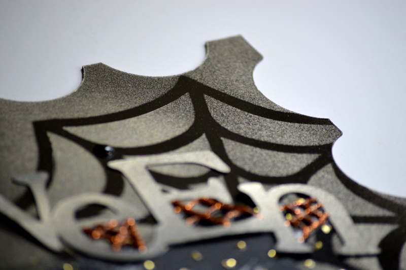 You can see I painted the back of the Clear Scraps XL Dazed Square in black spray paint, then used metallic spray paint on the front with the Clear Scraps Spider Web Mascil the 6" one.