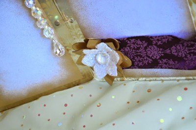 I wanted everything to be glittery and gold for the holidays and I added some rich velvet patterned ribbon.