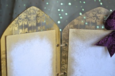 For the back of the frames I used the Clear Scraps Damask Mascil, and sprayed them with the same gold Krylon paint.