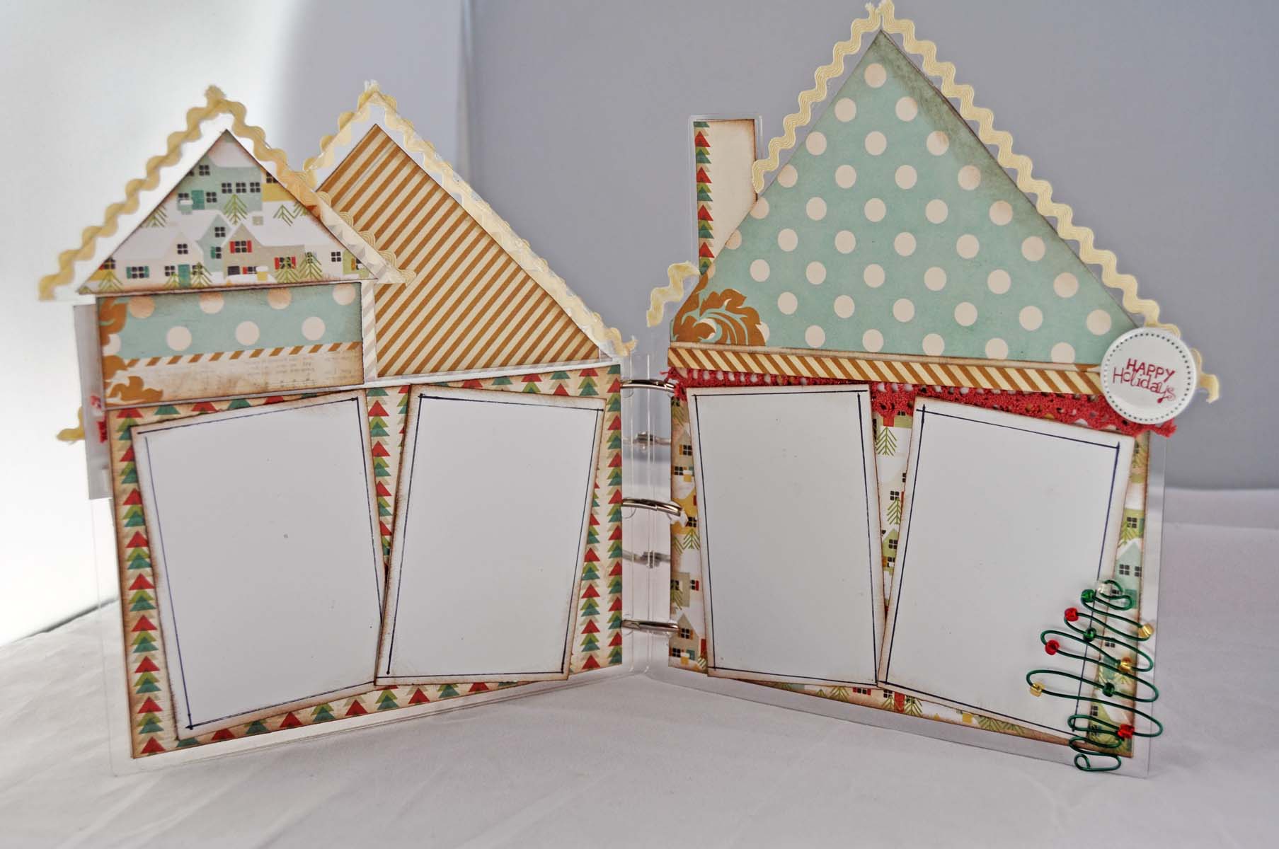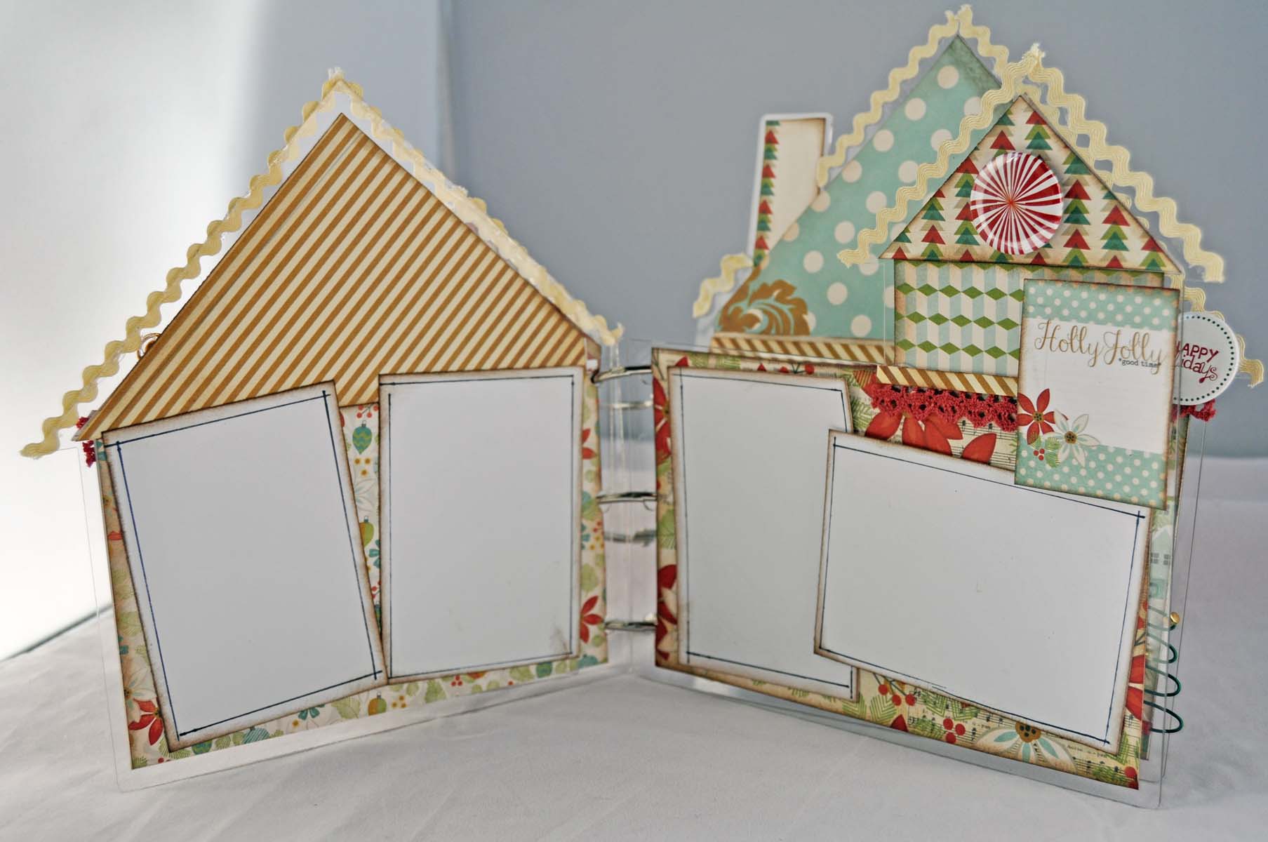 I chose the House Album because I thought it would make a perfect winter theme. With bits of "snow" made from ric rac and a holiday color palette, this mini came together in no time.
