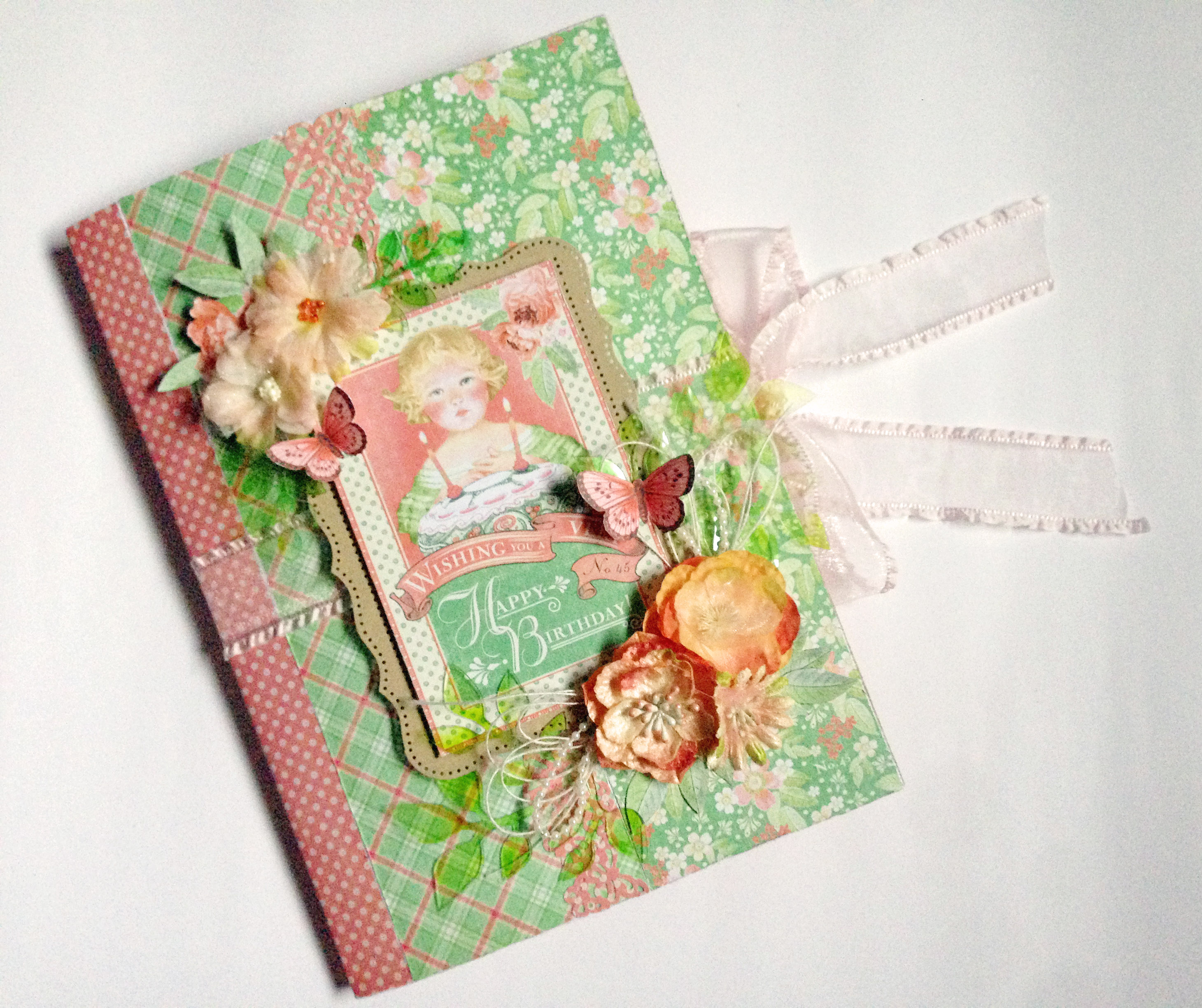 Katie here today sharing this huge card (A4 in size) I made for a 98 year old birthday granny whose birthday is this Saturday… I've recently gotten myself a Big Shot and with all the excitement, I decided to try die-cutting on acrylic… So here I'm sharing some of the die-cut acrylic using the 12" x 12" clear acrylic sheet as part of the embellishment here on the front cover of the card…