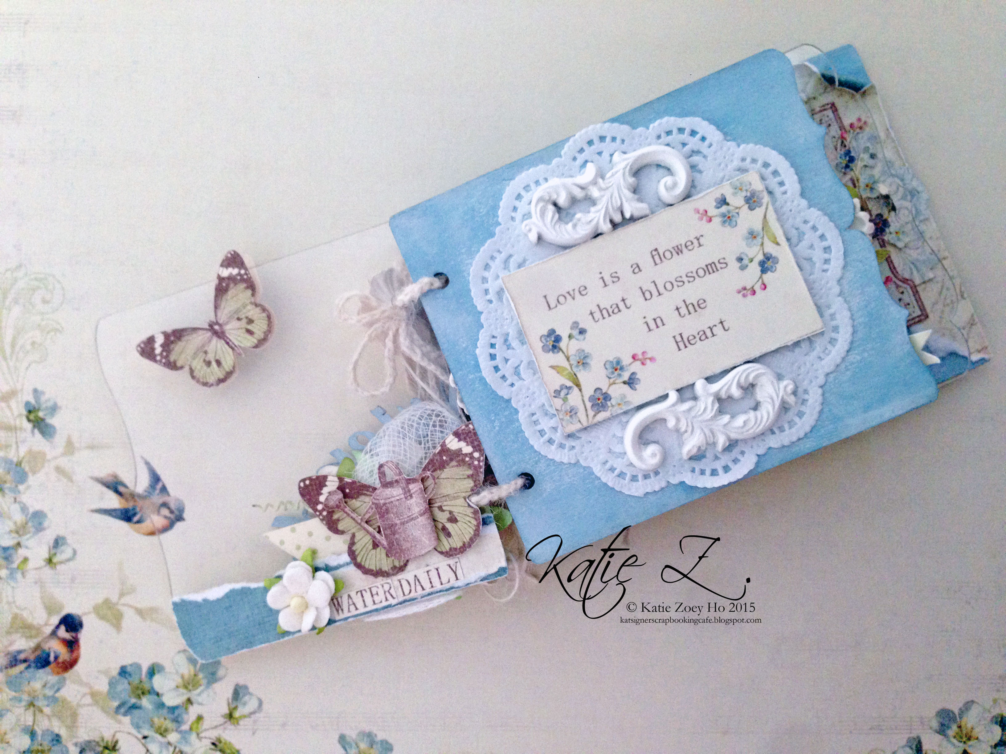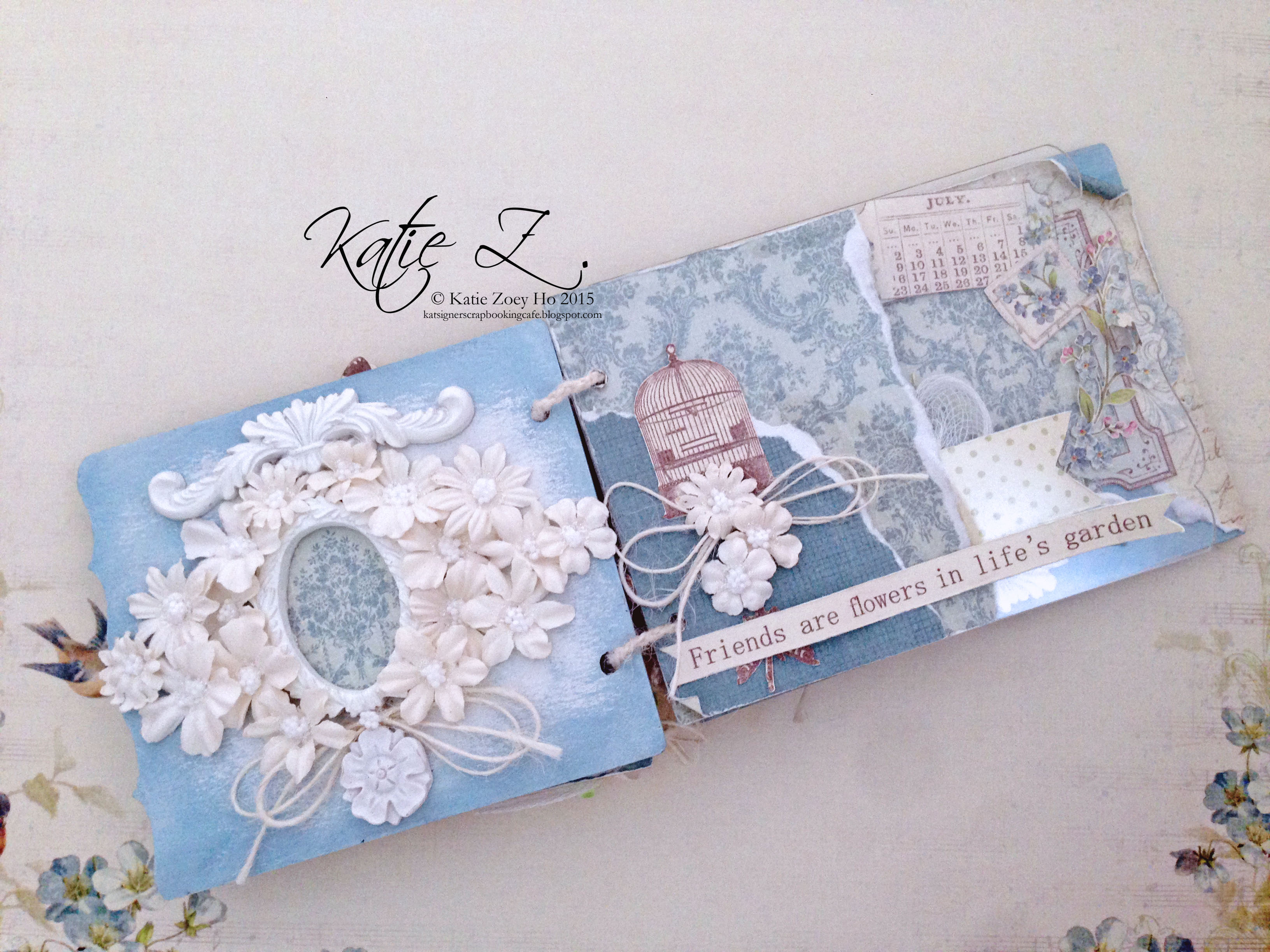 Katie here sharing this mini album for this month CHA features… Using Pion's shabby chic Vintage Garden paper collection and the Mini Mixables Tiny, I created this Friends mini album using blue as the main colour scheme…