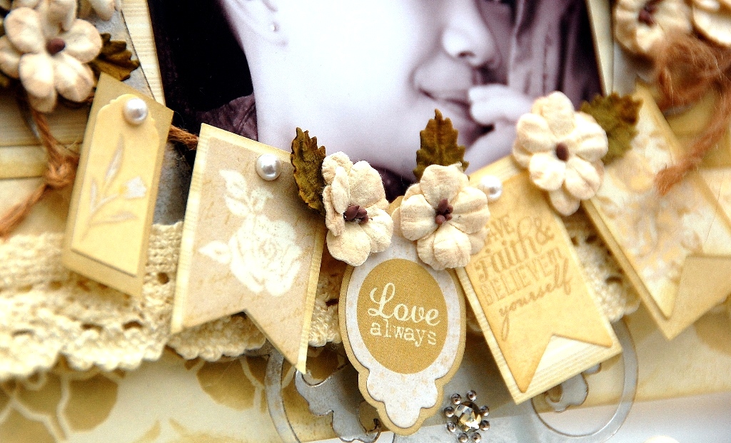 I've used the lace doily border to create some details on the bottom of the clipboard.