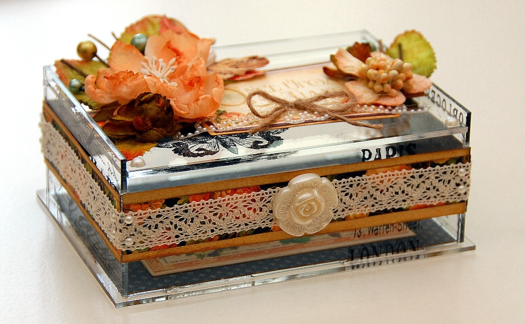 Hello everyone! Have you seen Clear Scraps new acrylic box? This is another of my favorites among the new releases. The acrylic boxes are perfect to be altered into an elegant and gorgeous gift.