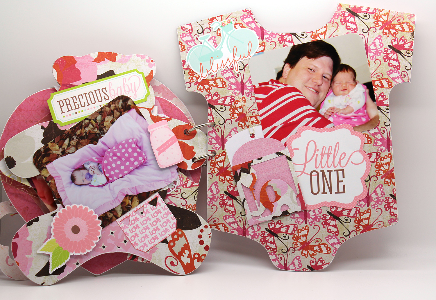 When working on a mini album I tend to get my photos printed, then work on covering all my chipboard pages with paper and cut out.