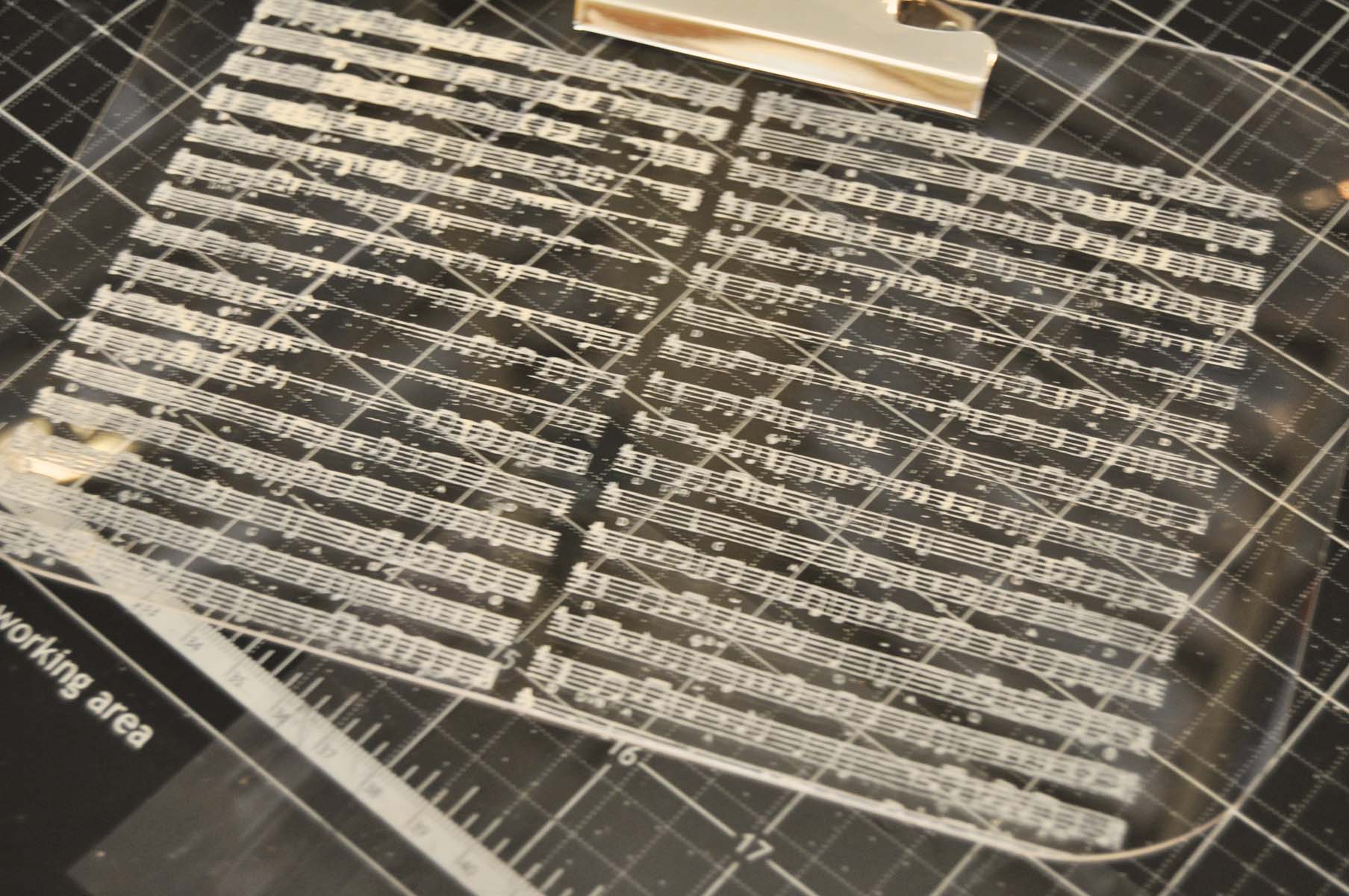 Step 1: Stamp the backside of clipboard with a music staff and white Staz-on ink.