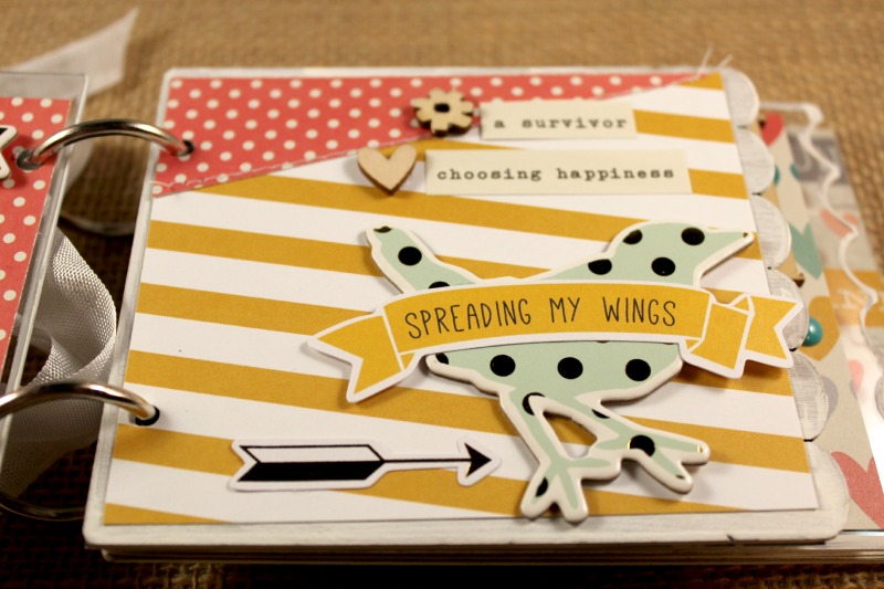 I also used acrylic paint to cover the edges of my chipboard pages. This page has a fun scallop edge!