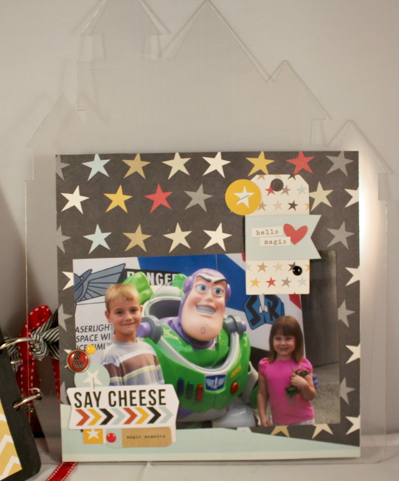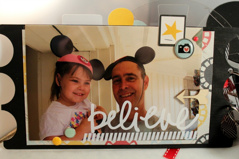 The next chipboard page is a rectangle base with Mickey ears! Perfect for a Disney themed book! 🙂
