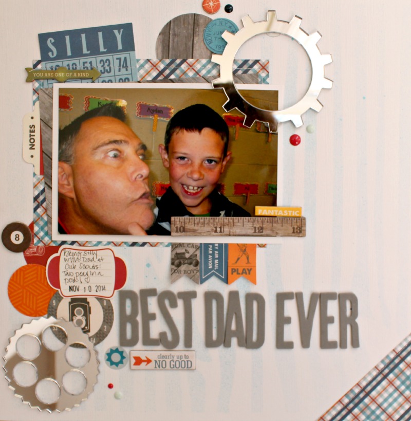 Hello friends! Jennifer here on the blog today to share a fun layout I created using the Gears Mirror Embellishments! I wanted to make a cute page just for Father's Day and I thought the gears would make the perfect accent!