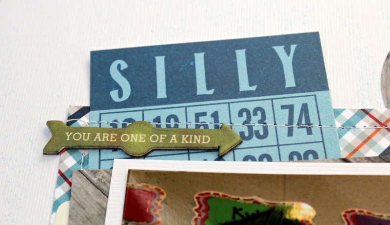 Additional products used: patterned paper, die cuts, enamel dots, chipboard: Echo Park Paper; cardstock: Bazzill; adhesive: Beacon, Tombow; misc: thread, sewing machine