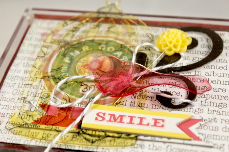 We have some fun Ruby Rock-It paper and embellishments to play with! I covered the Clear Scraps 3.5 x 5 Clear Box with their paper, as well as added the Clear Scraps Bird and Cage Embellishments!