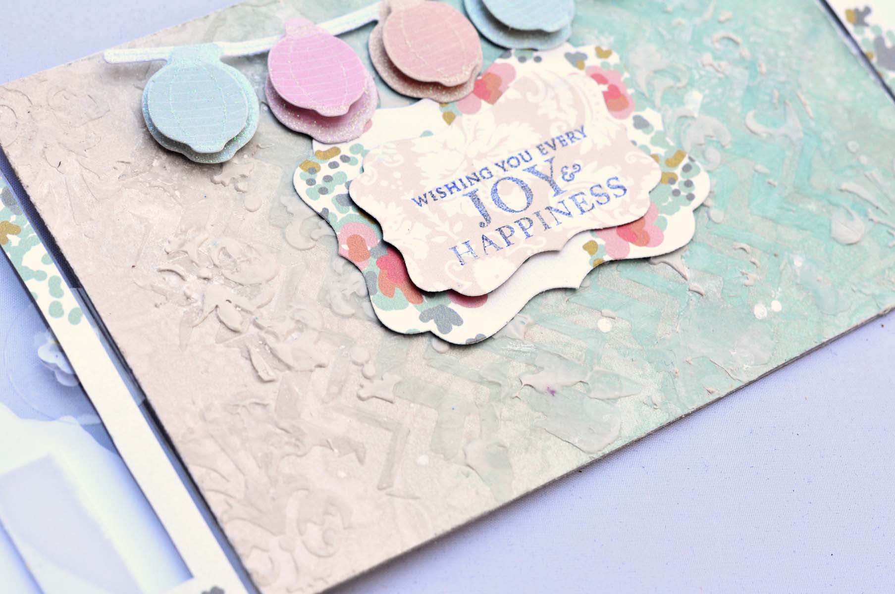 I love the combination of these papers and the Clear Scraps Deco Send it Clear Card. The two came together so quickly. If you want to see how I did the texture on the inside of the card, check out the complete tutorial here.