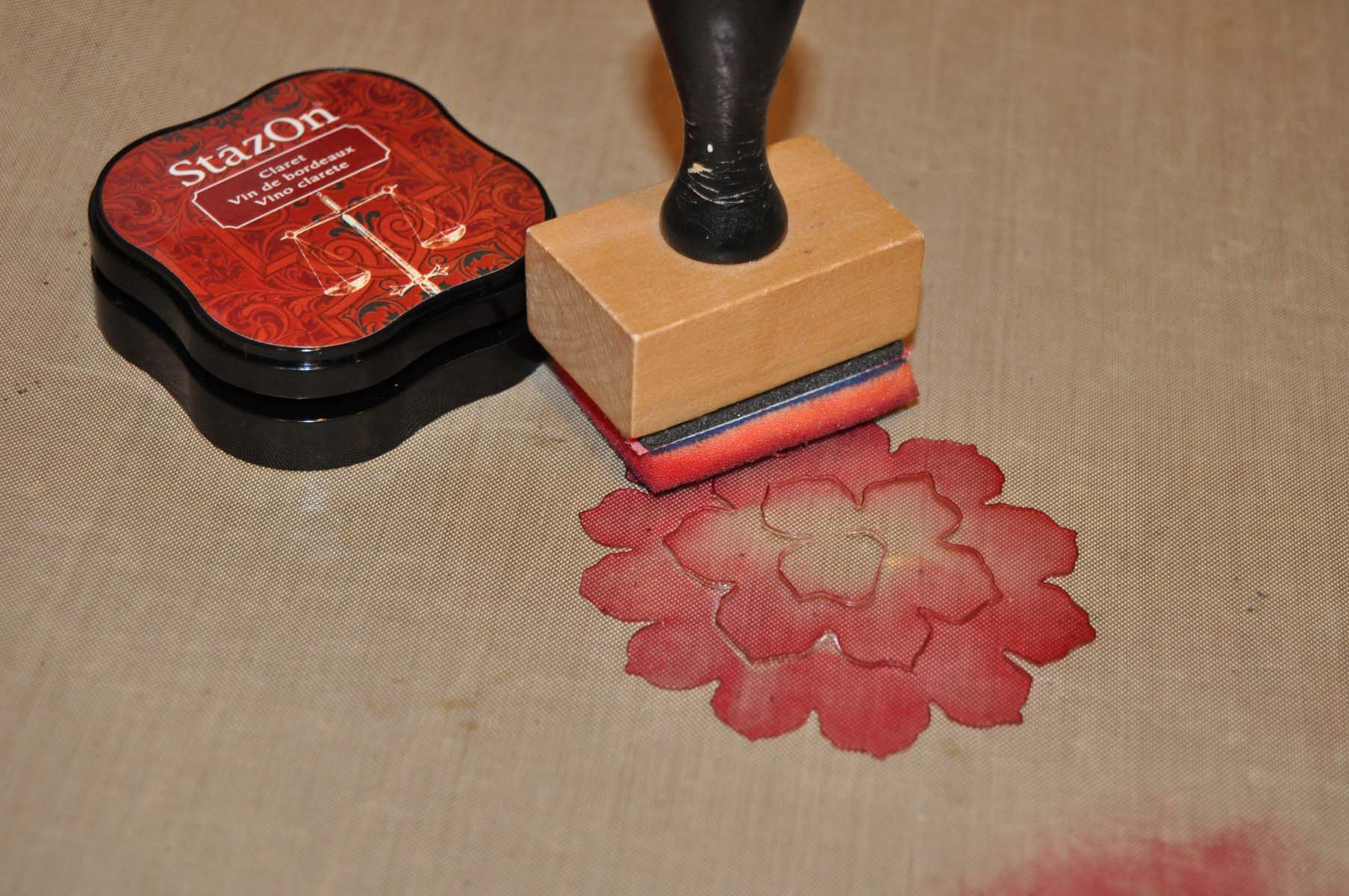 Next, after removing the protective covering, I inked the rose with some Staz-On ink in Claret.