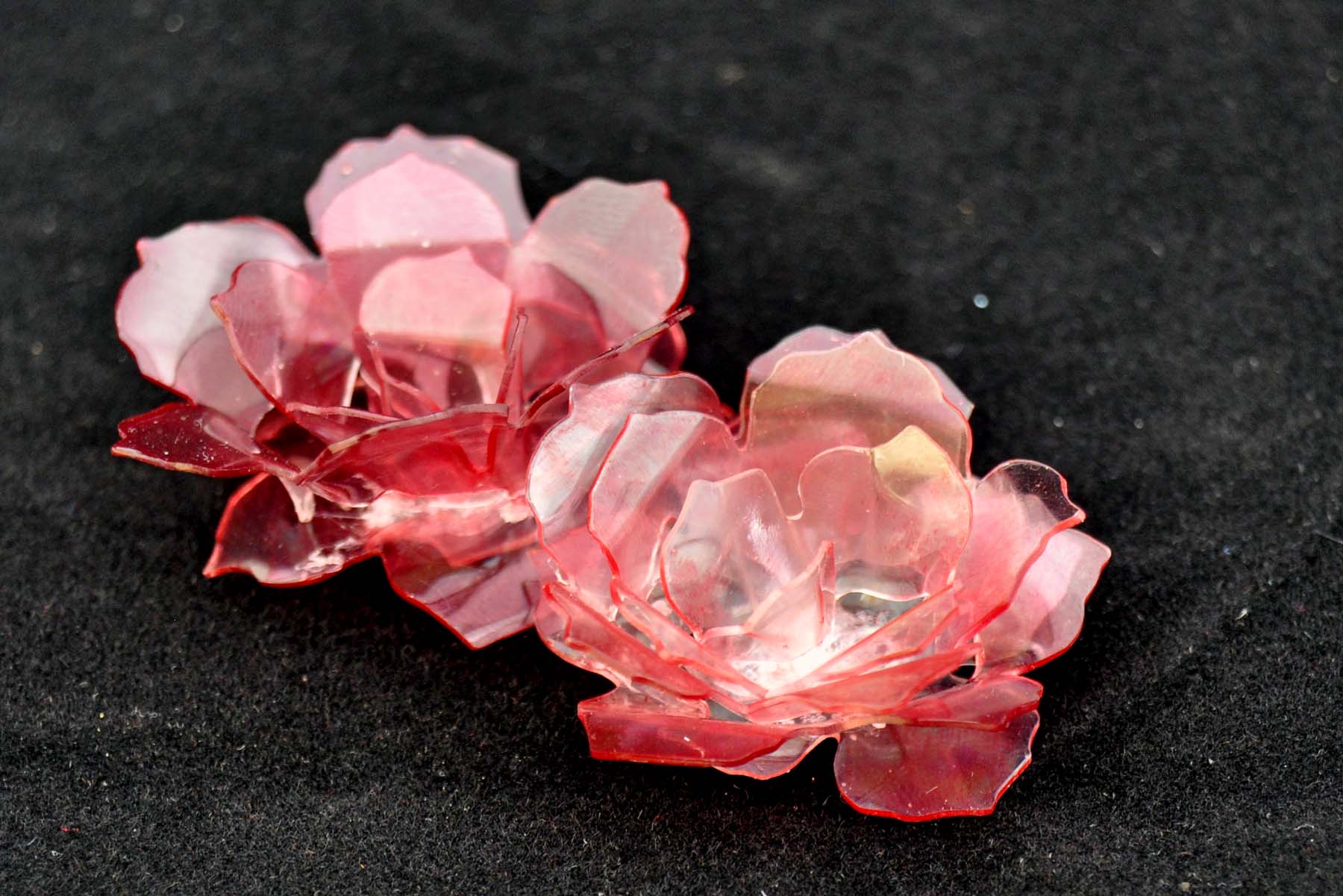 Finally, here is the tricky part, I simple heated the rose just enough to make the acrylic maleable. Be careful here, you don't want to shrink the acrylic, juste heat it so that you can begin the rolling process.