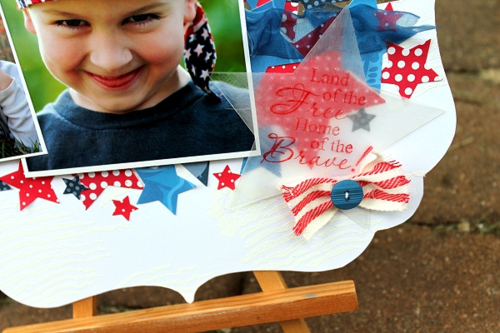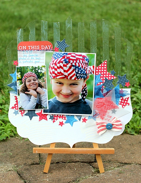 I'm kicking off the Independence Day weekend a day early with a 4th of July layout featuring Clear Scraps XL Deco Shapes, Stripes Mascil, and Star Embellishments!