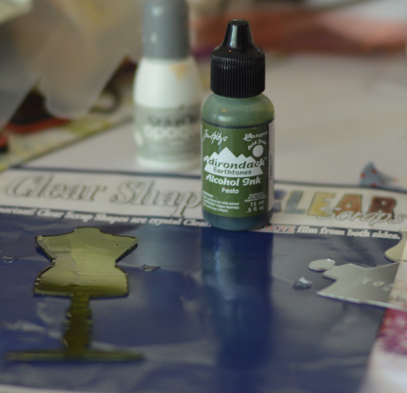 After that remove the protective film from the back and carefully drop alcohol ink onto dress forms (on the back) and allow it to dry.