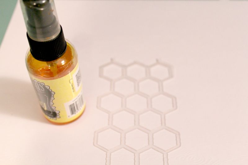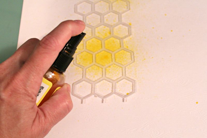 I almost always prefer to use a white cardstock background because I think it helps the colors to pop. But, feel free to use your favorite! Place the Mixer on your background and spray lightly using your favorite spray ink!