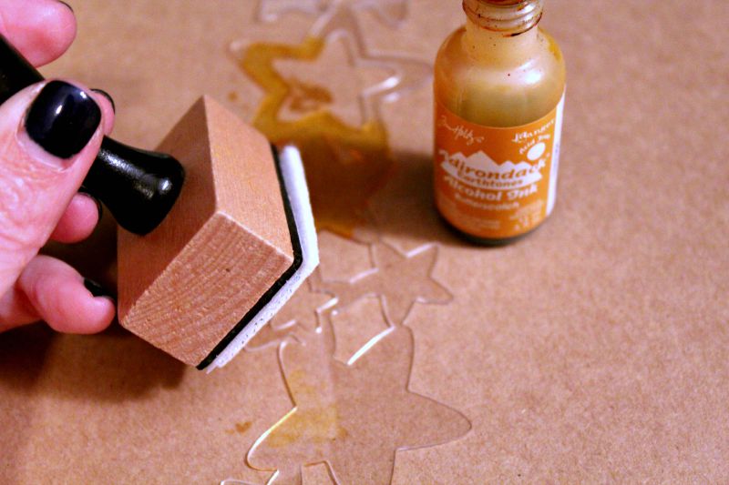 I have a tutorial on how I colored my acrylic border! First remove the plastic protective film from both sides of the border! Using a cotton applicator, lightly dab alcohol ink into the acrylic. Go as light or dark as you prefer!