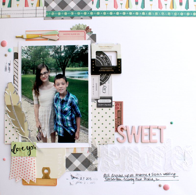 Hello! Jennifer here to share another layout using some very awesome Clear Scraps products! Did you know that you can emboss Clear Scrap acrylic shapes and words? That's exactly what I did with my Memories Expressions Clear Word Title.