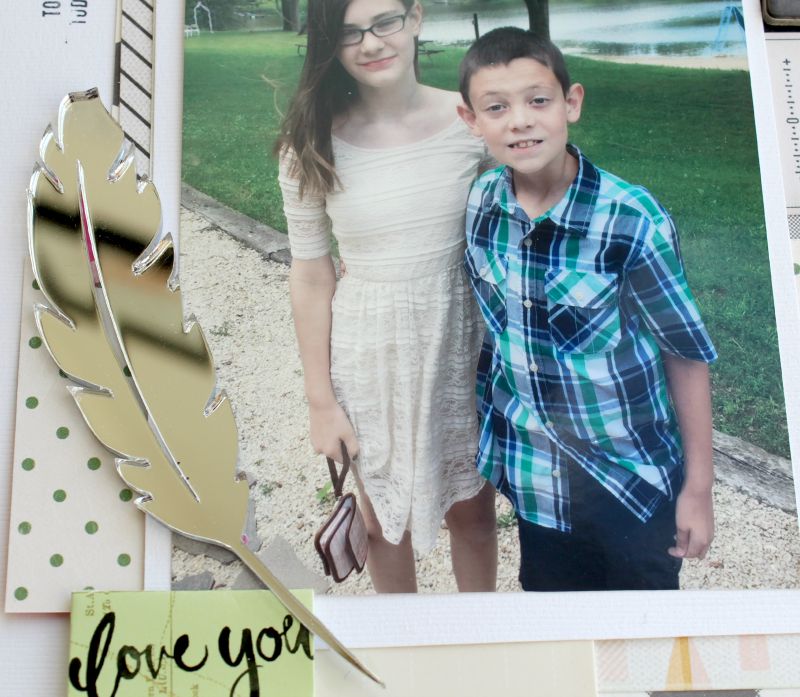 I can't get enough of the Clear Scraps' Mirror Embellishments! Here, I used one of the Feathers…you receive two in each package!