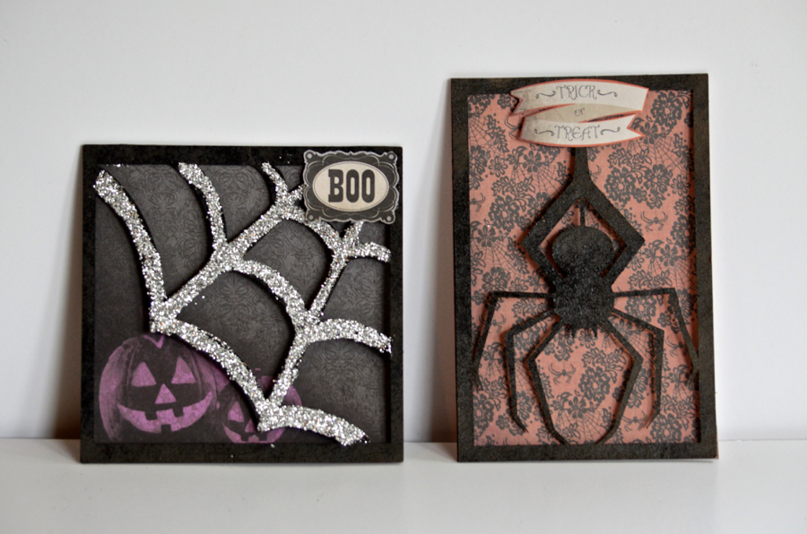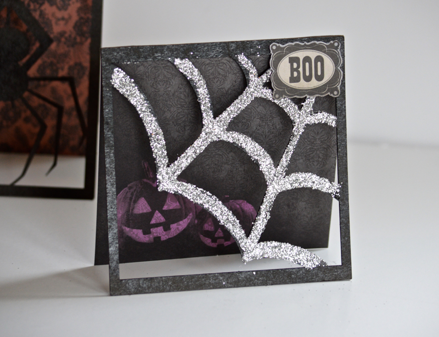 I decided to make "Window" Cards using the Spiderweb and Spider designs.