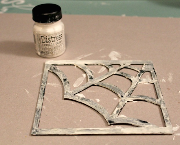 After allowing the paint to dry, I added crackle paint from Ranger. Once dry, I lightly sanded the edges.
