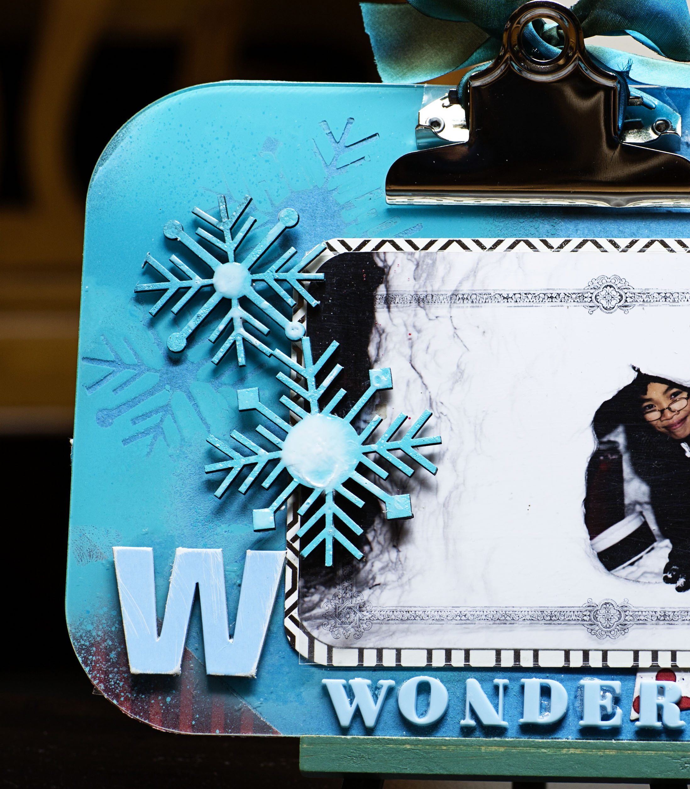 Brrr such a cold month and on that note this project is created with the small regular rectangle clipboard and nordic snowflake chipboard embellishments. This is my son having so much fun one snowyday in Seattle.