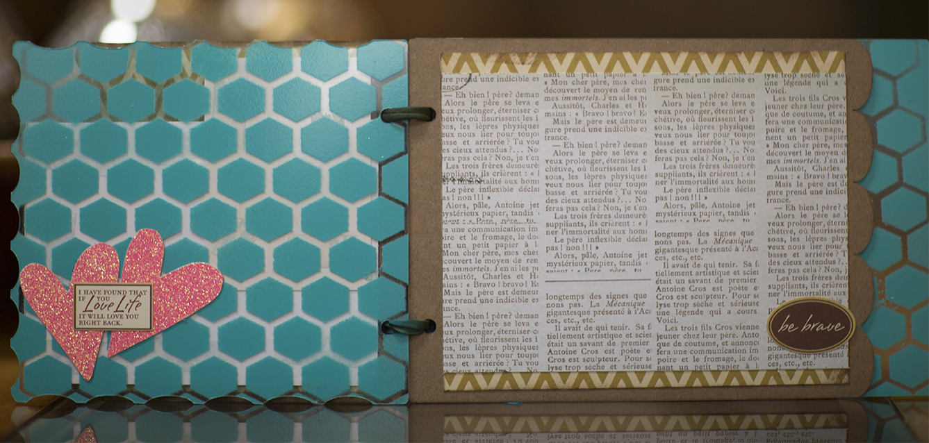 Hello everyone, this is Adora and today I am sharing this project I've created using the new mixable edgy album. I used the chicken wire stencil and spray paint on the acrylic page to create the background and use patterned papers on the chipboard. I love to show the raw part of the chipboard on this project.