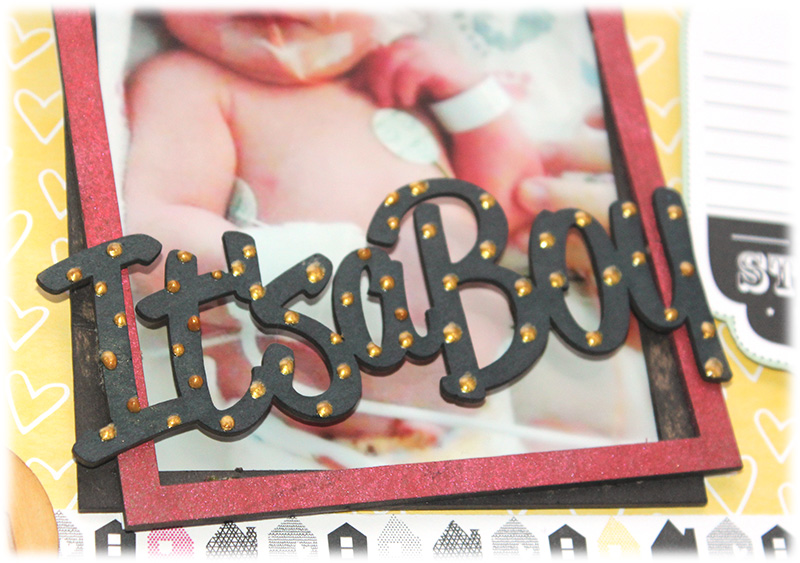 Leah here with you today to share a layout featuring the fabulous new chipboard word, It's a Boy!