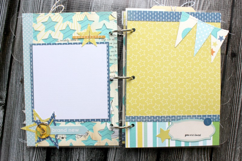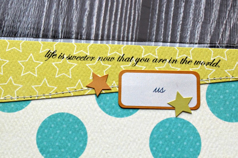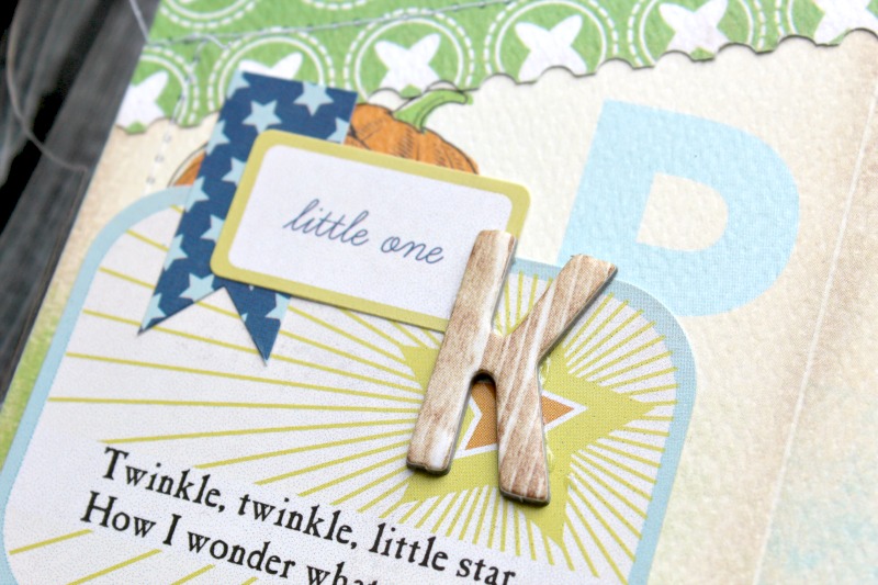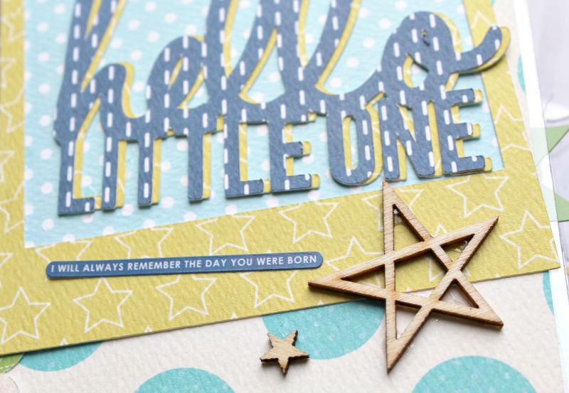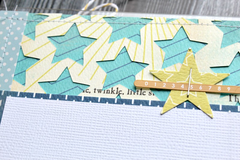 I used a star background cut file and backed with a darker pattern before adhering to my page. I am a fan of layering papers…its gives a little bit of dimension to your projects.